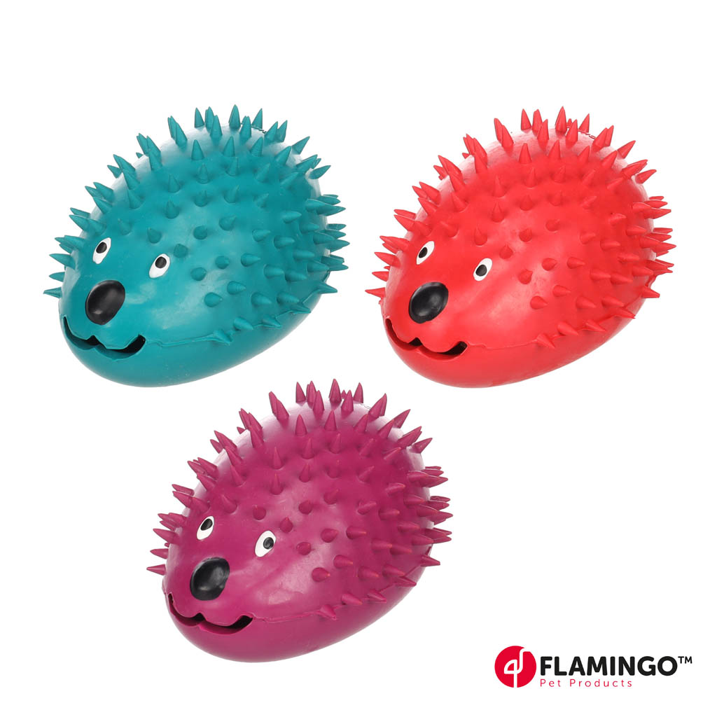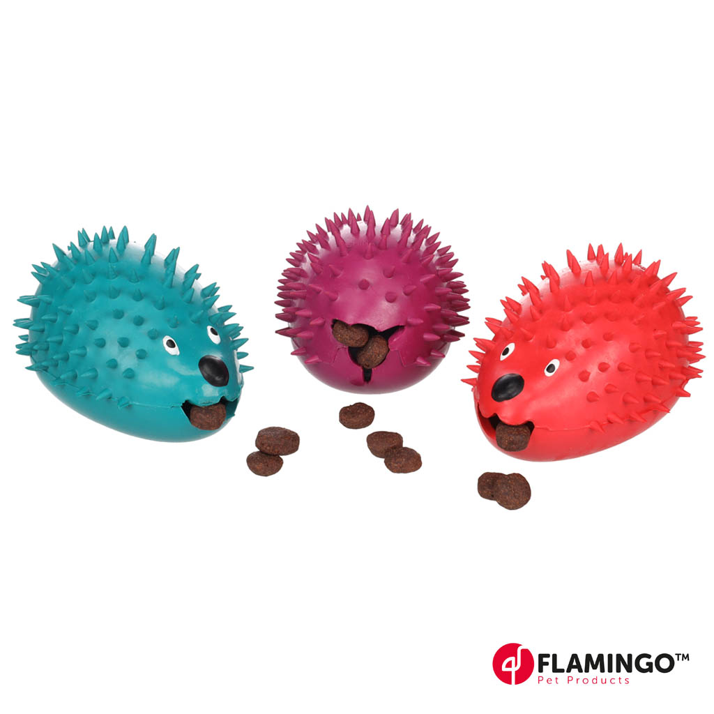 Soikean mallinen, kimmoisaa, mutta joustavaa kumiseosta oleva siili lelu koiralle. Lelu voidaan täyttää nappuloilla tai muilla kuivaherkuilla, molemmissa päissä olevien aukkojen kautta. Saatavissa kolmessa eri värissä. Soveltuu pienehköille ja keskikokoisille koirille