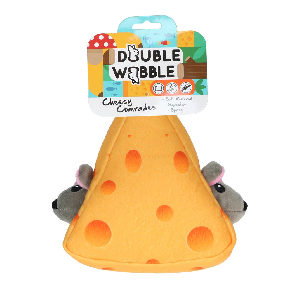 Joustavalla vieterillä ja vinguilla varustettu koiran pehmolelu. Juuston sisältä kurkkaavat hiirulaiskaverukset ovat hauskan vieterin päässä ja pyrkivät ponnahtamaan koiran ulottumattomiin. Hiirulaisissa on vingut, jotka tuovat vielä lisää lystiä lelulla leikkimiseen. Lelu ei ehkä ole paras vaihtoehto koirille, jotka vain haluavat jäystää leluja rikki, mutta hellä suisemmille leikkijöille mitä hauskin leikkikaveri. Lelu on korkeudeltaan 20 cm ja leveydeltään 20cm (mitoissa ei ole mukana venytettyä vieteriä). Alla olevasta videosta voit tutustua leluun lähemmin.