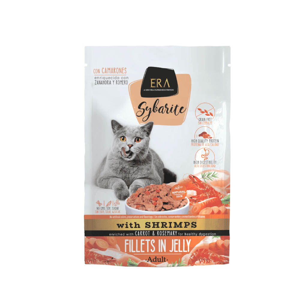ERA Sybarite Adult Shrimp märkäruoka sisältää toiminnallisia ainesosia, kuten porkkanoita. Se sisältää beetakaroteenia, joka on erittäin hyödyllistä silmien terveydelle. Lisäksi se tukee kissan turkin ja ruoansulatuksen terveyttä. Ruoka tarjoaa kuidun lähteitä sekä A-, C-, E- ja K-vitamiineja. Rosmariini toimii antibakteerisena aineena antiseptisen vaikutuksensa ansiosta ja sillä on myös erinomaiset tulehduksia ehkäisevät ominaisuudet.