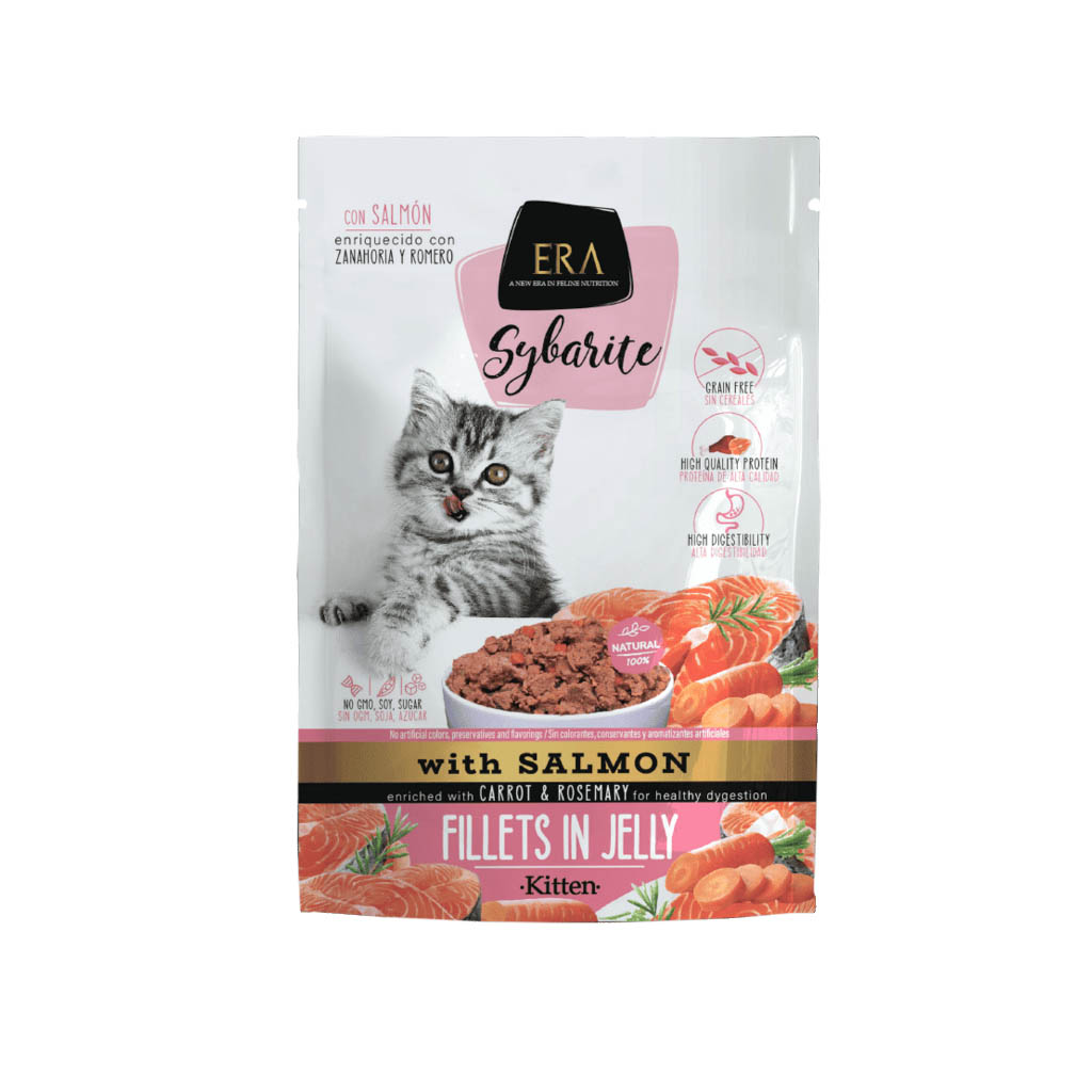 Kissanpennun ERA Sybarite märkäruoka on valmistettu eurooppalaisista raaka-aineista ja se tarjoaa korkean lihapitoisuuden, tukemaan kissanpennun kasvua. Se sisältää beetakaroteenia, joka on erittäin hyödyllistä silmien terveydelle. Lisäksi se tukee kissan turkin ja ruoansulatuksen terveyttä. Ruoka tarjoaa kuidun lähteitä sekä A-, C-, E- ja K-vitamiineja. Rosmariini toimii antibakteerisena aineena antiseptisen vaikutuksensa ansiosta ja sillä on erinomaiset tulehduksia ehkäisevät ominaisuudet.