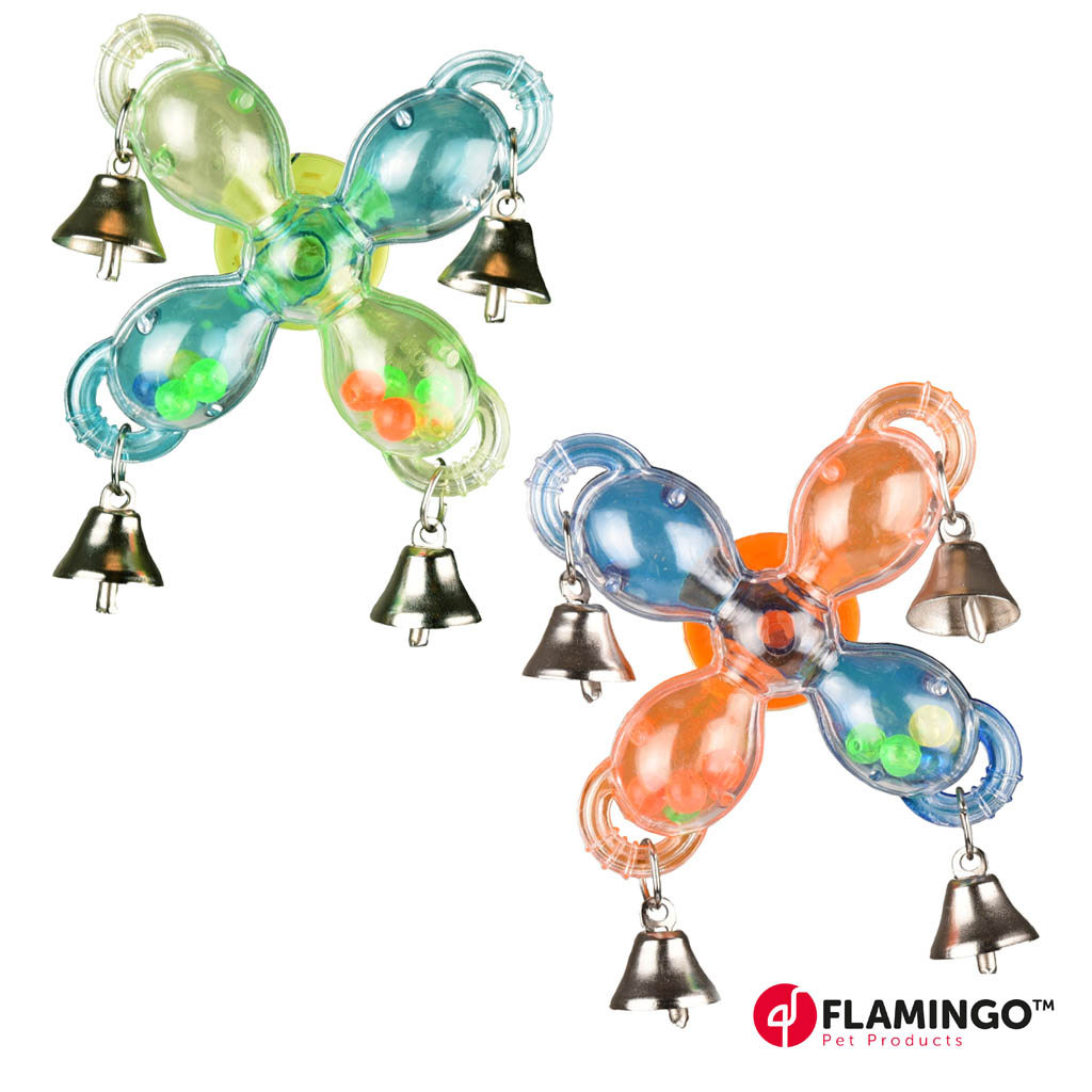 Lintujen lelu, joka on potkurimainen ja jota lintu voi helposti pyörittää ja saada näin sisällä olevat värikkäät helmet liikkumaan sekä kellot kilisemään. Lelu on helposti kiinnitettävissä häkin pinnoihin, takana olevalla kiinni kierrettävällä kiinnitysmekanismilla.
