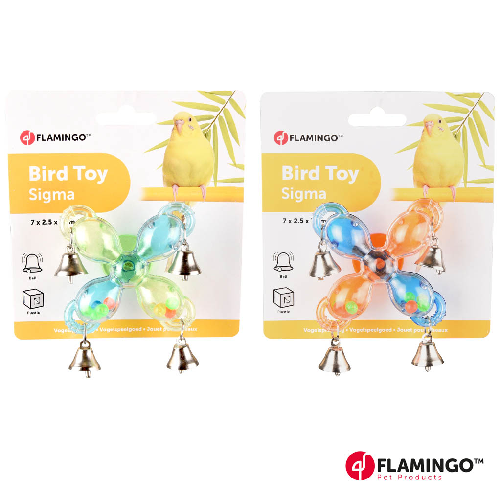 Kevyesti pyöritettävä lelu linnuille. Lelussa on kiliseviä kelloja sekä värikkäitä muovihelmiä, jotka liikkuvat lelun sisällä sitä pyöriteltäessä. Kiinitettävissä helposti lemmikki linnun häkin pinnoihin.
