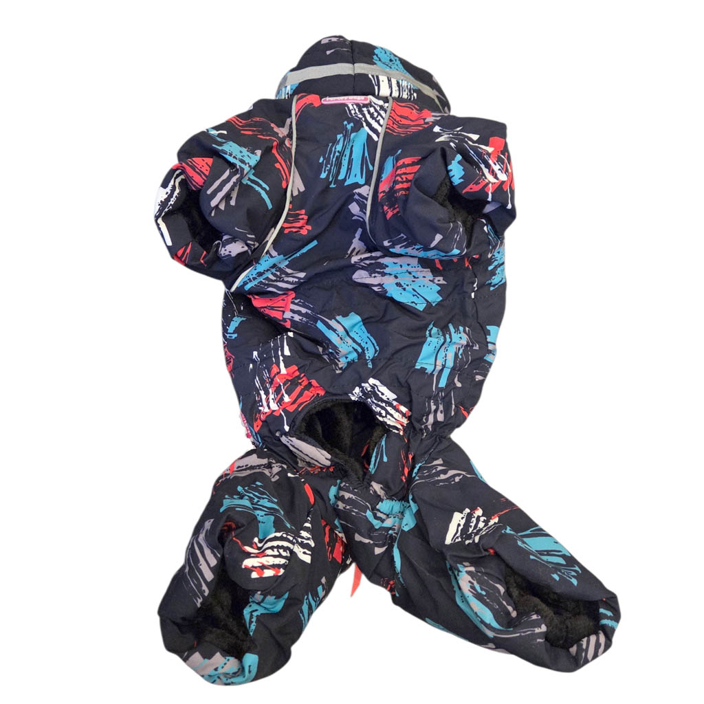 Talvihaalari poika koiralle, ihanalla tummansinisellä kankaalla, jossa on värikkäitä yksityiskohtia. Hyvät heijastavat kohdat, tuovat turvaa hämärissä lenkkeilyyn. Ihastuttavan pehmeä sisävuoraus, joka pitää koiran myös lämpöisenä hyytävilläkin ilmoilla.