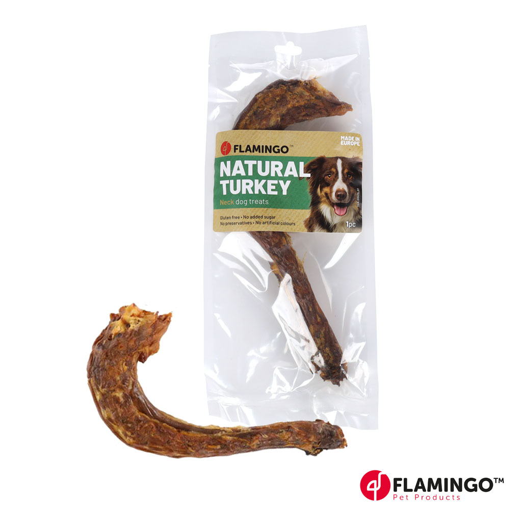 Kalkkunan kaula on luonnollinen herkku koiralle. Reiluhkon kokoinen kaula tarjoaa koiralle niin ajanvietettä kuin pureskeltavaakin pidemmäksi toviksi.