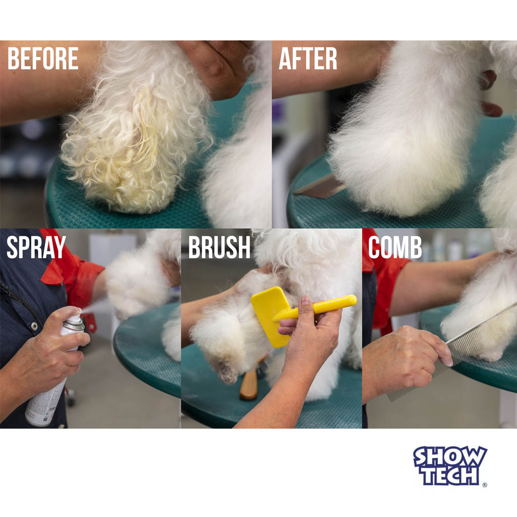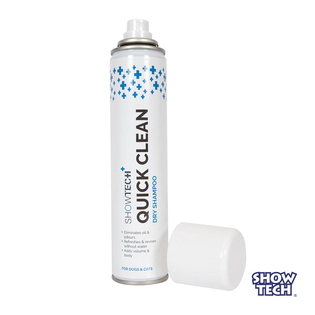 Kuivashampoo kissoille ja koirille, lemmikin vedettömään pesemiseen. Kätevä suihkutettava Showtech Quick Clean shampoo, poistaa turkista liiallisen rasvan sekä lian, jättäen lemmikin turkin raikkaaksi ja puhtaaksi. Tuotteen käyttäminen on helppoa sekä nopeaa, suihkuta kuivashampoota likaiselle alueelle ja harjaa, valmista!