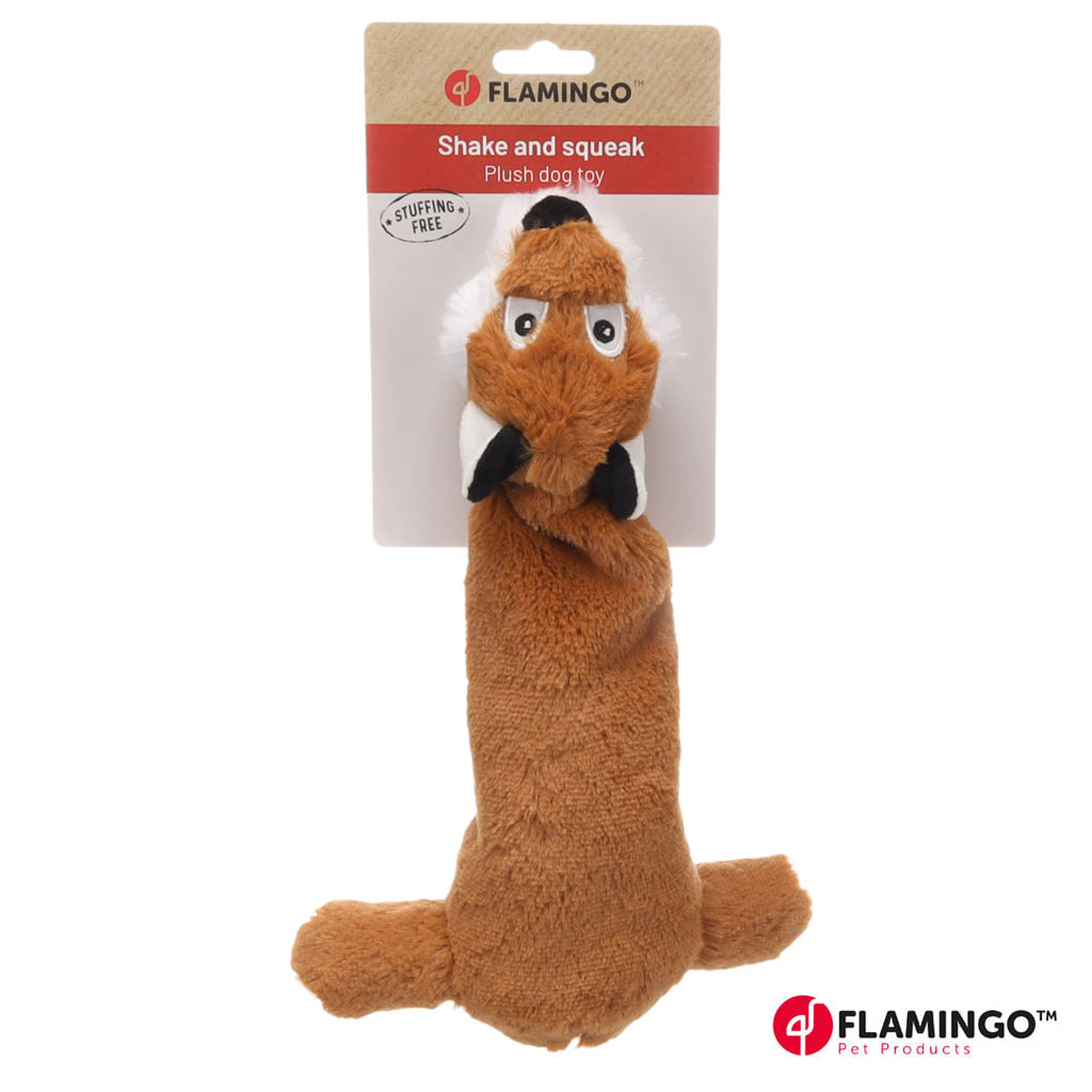 Koiran pehmolelu vingulla ja löyhällä täytteellä. Mukava pitkän mallinen muoto, mahdollistaa lelun helpon kanniskelun. Lelussa oleva vinku kannustaa lelulla leikkimiseen. Lelu on kevyt, jonka ansiosta se soveltuu myös pienehköille keskikokoisille koirille leikittäväksi.