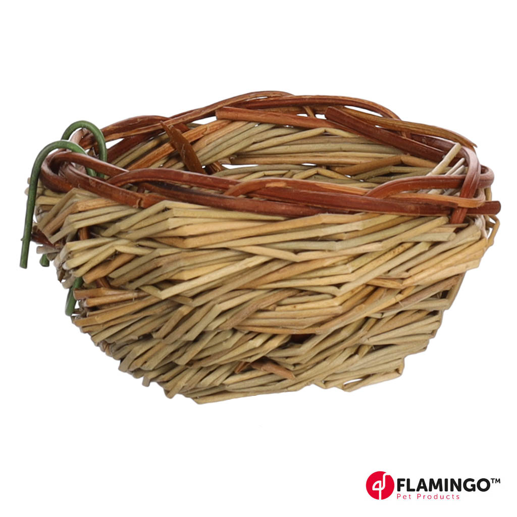 Pienehkö kokoinen elefanttiruohosta punottu linnun pesä. Häkinpinnoihin helposti tukien avulla kiinnitettävä pesä on halkaisijaltaan 11 cm ja korkeudeltaan noin 5 cm. Luonnonmateriaalista valmistettu pesä mahdollistaa linnun pesimisen ja hautomisen.