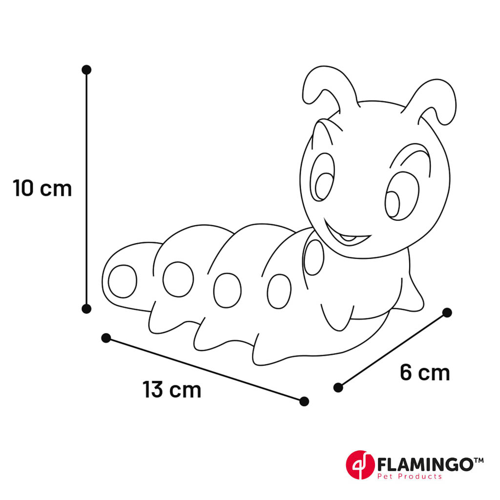 Koiran toukka lelu ilahduttaa iloisella ilmeellään sekä vingullaan. Vinkulelu on valmistettu luonnonkumista eli lateksista ja se soveltuu keveytensä ja kokonsa puolesta hyvin pennuille ja pienehköille koirille.Toukan pitkulainen muoto mahdollistaa sen helpon kanniskelemisen.