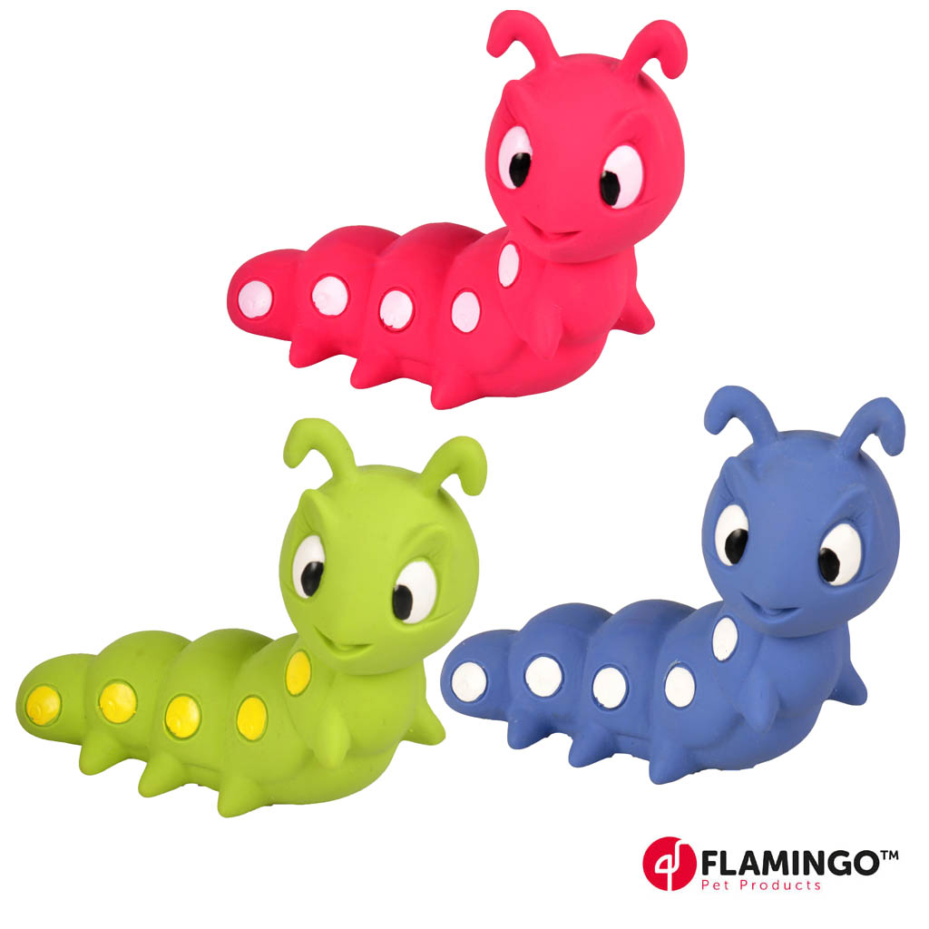 Luonnonkumista valmistettu toukka vinkulelu koiralle. Helposti kannettava ja kevyehkö lelu soveltuu niin pennuille kuin pienehköille aikuisillekin koirille leikkikaveriksi.
